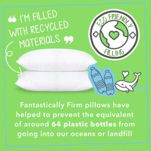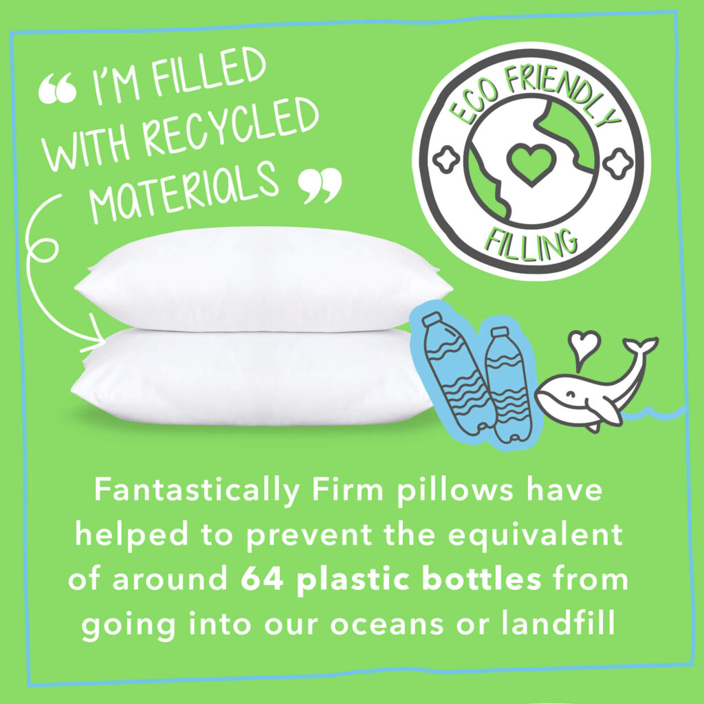 - ECO FRIENDLY: Fantastically Firm pillows are filled with 100% recycled content and each pillow pair has helped to prevent around 32 plastic bottles going into our oceans or landfill.
