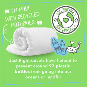 - ECO FRIENDLY: The Just Right duvet is filled with 100% recycled materials and has helped to prevent up to 97 plastic bottles going into the oceans or landfill.