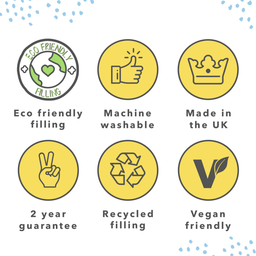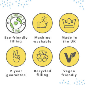 We’ve got you; your bedding is filled with recycled materials giving our lovely planet a helping hand. We care so you can be carefree, the squidgy fibres were once plastic bottles that have experienced a wonderful makeover. Our packaging is made from 30% recycled materials and can be fully recycled.