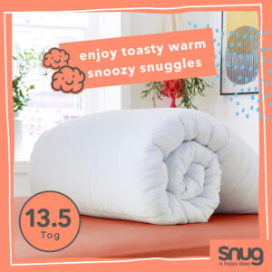 - SNOOZY SNUGGLES: Get ready to snuggle up! Made for cosy comfort and warmth, the Snug duvet will keep you snug as a bug throughout the night.