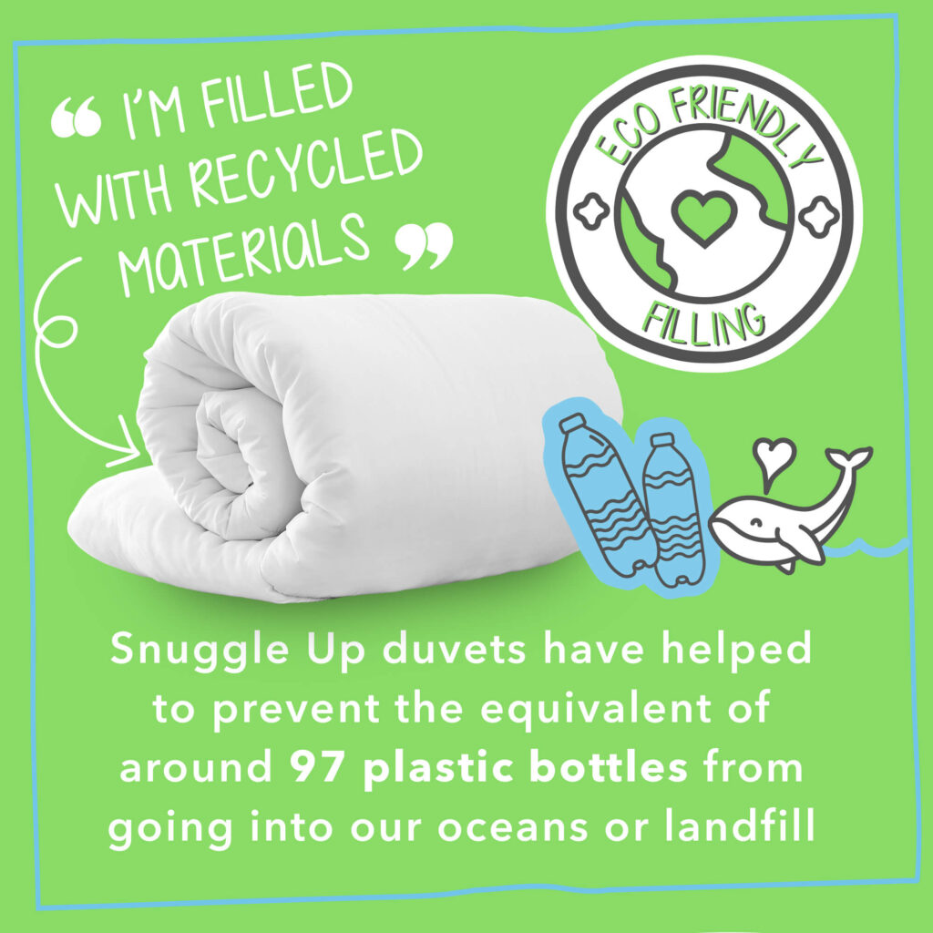 - ECO FRIEDNLY: The Snuggle Up duvet is filled with 100% recycled materials and has helped to prevent up to 97 plastic bottles going into the oceans or landfill.
