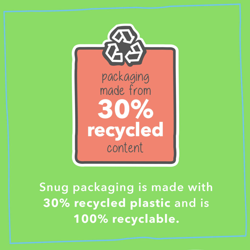 - RECYCLED PACKAGING: Snug packaging is made from 30% recycled materials, and better still, its 100% recyclable; just pass on to your local supermarket or recycling point.