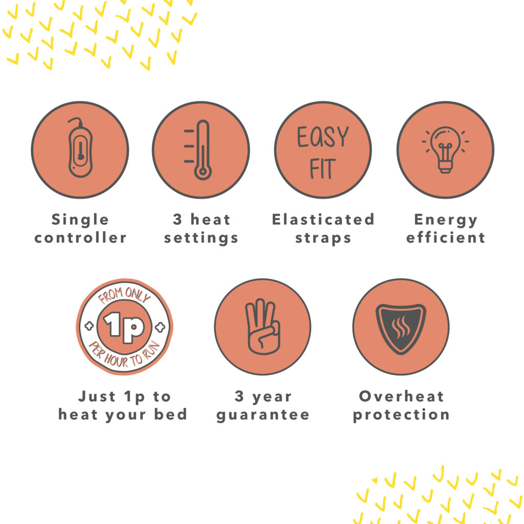 - SLEEP SAFELY: Overheat protection means you can snuggle up and snooze without a worry. As with all electric blankets, we recommend they are switched off before you go to sleep & constant use at highest temperature is avoided.